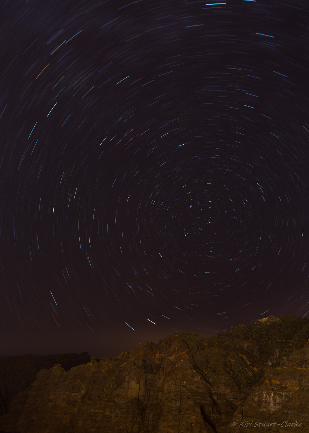 Tenerife is renowned for its clear skies, even being home to a well regarded observatory and was an ideal place to demonstrate the technique. The pole star (the fulcrum around which the star traisl will curve) was perfectly positioned above the cliffs in the evening just after dark fell.